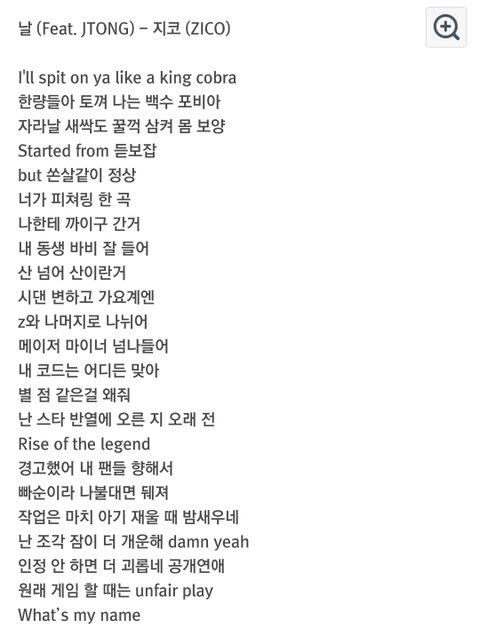 +) 그 너가 피쳐링한 곡의 '너'가 누굴 의미하냐 물으시는분들 계신데, 거기까진 저도 잘.. 궁금하시면 지코에게 직접 물어보시는게 빠를거에요. 제가 마음대로 추측할수있는 부분이 아니니까. 앞가사내용 다 올려드릴게요
