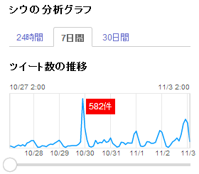카타가나 '시우' 검색결과 10/30 하루치 검색량