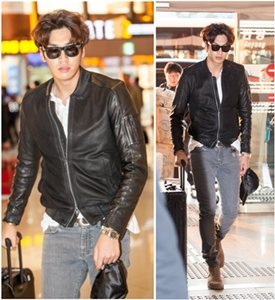 최근엔 남성미 풍기며 지오투 가죽 블루종 입고