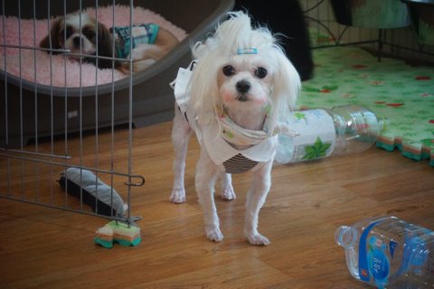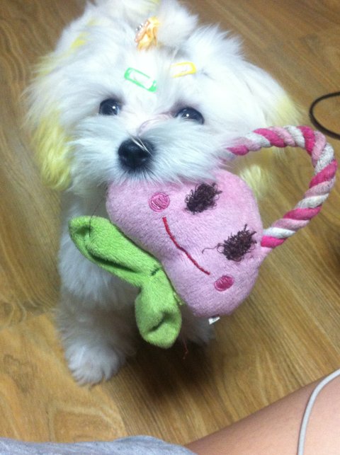 털도 많이 자랐고 여느 강아지와 다를바 없이 스타킹을 좋아했음....오해하지말아요 암컷인딩 .