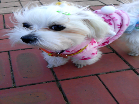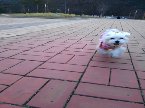 약간 추운날 산책이였음. 나름 망토를 사줬는데 자꾸 돌아가서 팽개침.