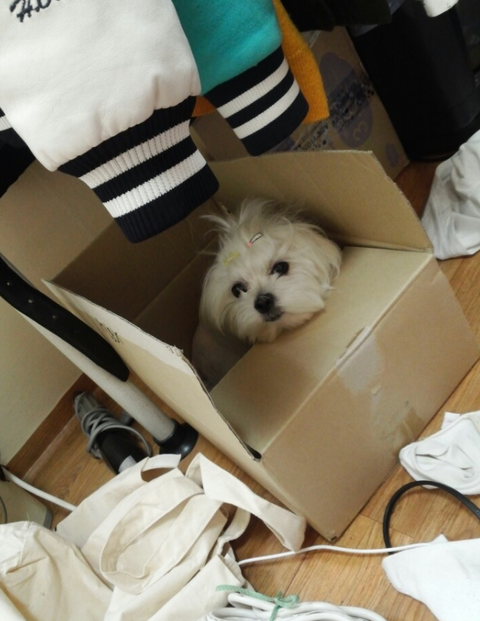 첫 이사를 하고 마루는 조용히 저 박스안에 들어가더니 짐 다 정리할때까지 나오지않았다...