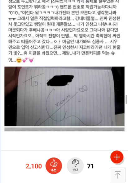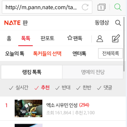내가 추천 2100때 캡쳐한 거라도 올려볼께 ㅋ 추천이 2200이 넘고 반대도 별로 없고 댓글 쓰러온 사람들이 다들 신기해 할 정도로 우리 민석이 인성에 대한 반응이 좋아서 슈듯한 글이었는데.... 글은 사라졌지만 그래도 슈듯했던 기억만은 남기고 싶어서~~~ >.<