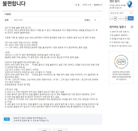 S전자 서비스센터 후속 조치 ->25만원 들여 수리하라고 함. 재발 방지 없음. 대응 어려우며, 다시 콜센터로 재접수하라는 통보.