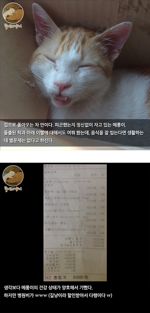메롱이에게 천사가 나타났네요.. 얼릉 나아서 좋은 집사만나 행복하게 살았으면 좋겠네요~~