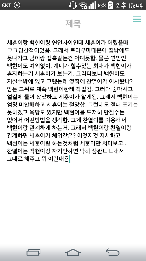 저번에 글올렸었는데 내글 짤려서 이미지로 다시올림 ㅠㅠ 이거 예전에 텍파 올려둔 블로그에서 지나가다 받은건데 텍파제목도 그냥 세1훈×백1현 이렇게 되있었어서 제목은 몰라ㅠㅠ 폰맛가면서 초기화되가지고 안에 저장된거 날아가면서 찾을 방법이 없게됨 ㅠㅜ 나 이거 진짜 다시보고 싶어서 그러는데 제발 제목 좀 누가 알려줘! ㅠㅠㅠㅠㅠ