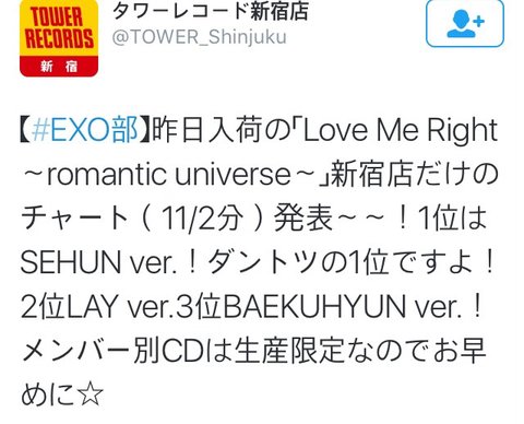 타워레코드 신주쿠점 1위세훈 2위레이