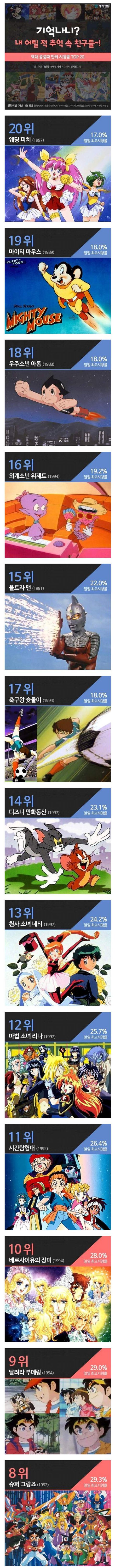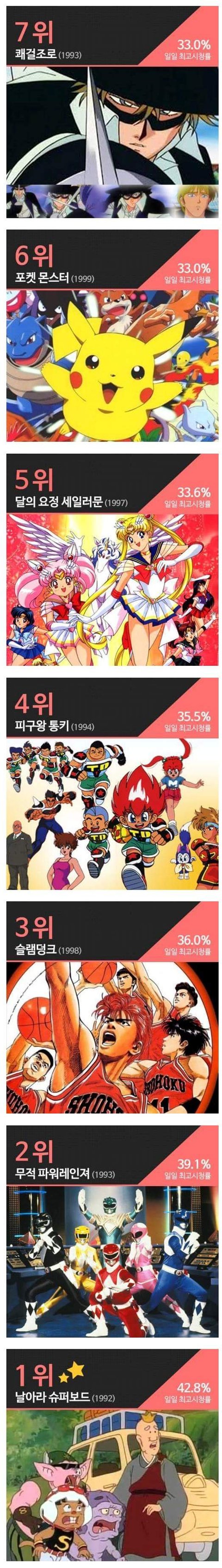 역대 추억의 tv만화 시청률 TOP 20