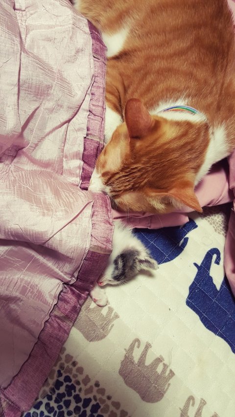 땅콩이의 격한 그루밍에 애 몸이 요리조리 뒹굴뒹굴..