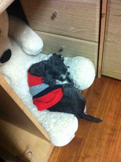 곰인형 발밑에서 자는게 젤 편하구나~~!!코니야ㅎㅎ