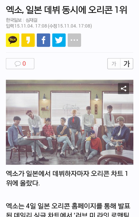 엑소 일본 데뷔 동시에 1위 기사