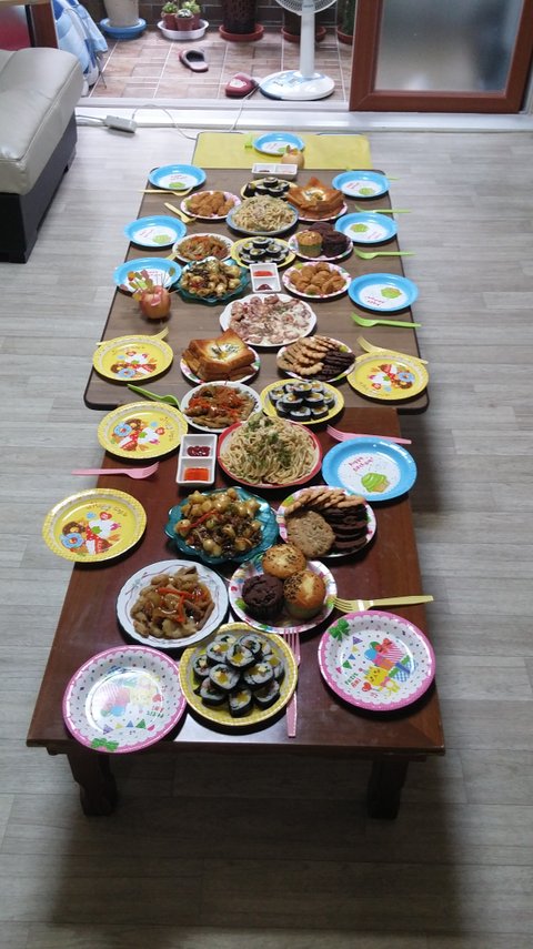 큰애가 초3이라 마지막으로 생파해주겠다며 (간략한 꼬마소님만 13명ㅠㅠ) 준비했던 생일상ㅎ 사실 아이들보단 함께 온 엄마 잔치였어요^^