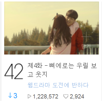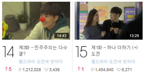 1시간 전 쯤에 캡쳐했음 12시 지나면서 지금은 순위가 좀 바뀌었지만 아직도 50위 안에 5편 있어 ㅋ 4화야 기운내!!!