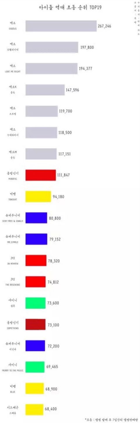 아이돌 역대 초동 순위top19