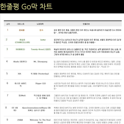 2015년 10월 한줄평 Go막 차트