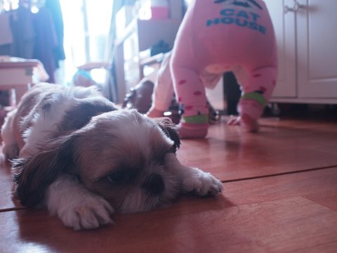 결혼하고 1년정도후에 아기도 없고 부쩍 우울해하는 시기에 신랑이 시츄 한마리를 데려왔어요!
