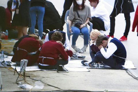 밑의 사진은 실제로 벌을 받는 세븐틴 멤버들의 모습입니다 (그 당시 12살이었던 사무엘이라는 멤버도 있었으며 총괄리더, 맏형인 에스쿱스, 정한, 조슈아, 탈퇴한 장도윤이라는 멤버들까지 해서 멤버 전원이 미성년자였을 때입니다.)