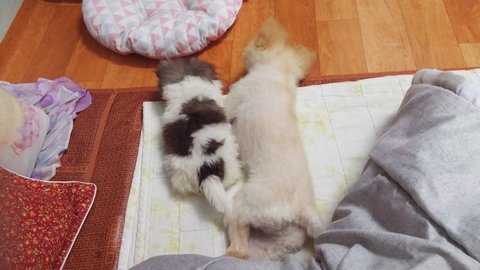 크림이가 먼저 잠들면 슈가 놀자고 크림이 귀 깨물고