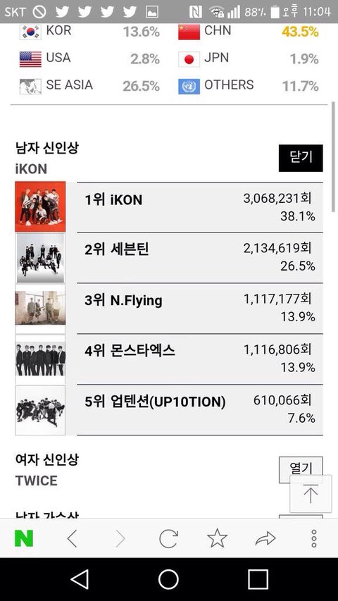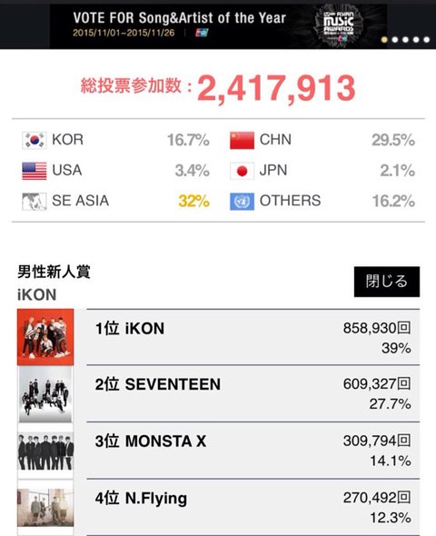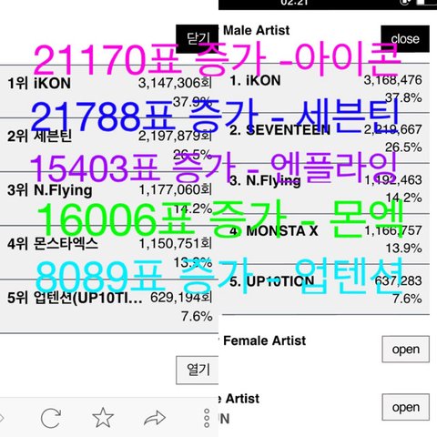 원래 순위는 1위 아이콘 2위 세븐틴 3위 몬스타엑스 4위 엔플라잉 5위 업텐션이었음
