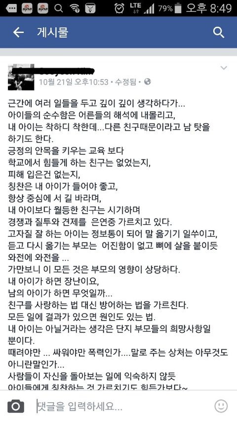 가해자 어머니가 올리신 페북 캡처 올립니다.(며칠 후 삭제됨)