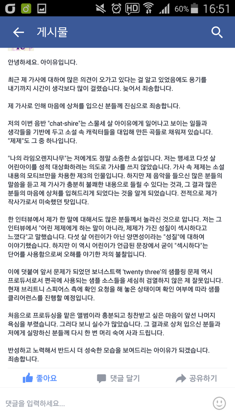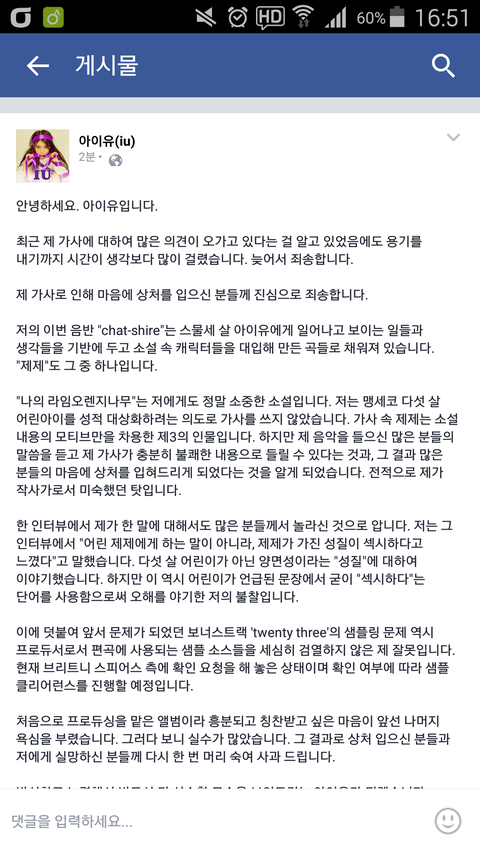 그래도 잠수안타고 해명글올렸네 . 이번계기로 더조심한 아이유가 되길