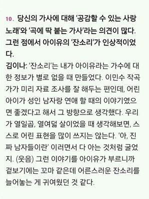 3. 노래 '잔소리' 관련 김이나 작사가의 인터뷰
