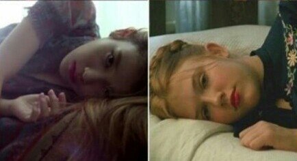 첫번째 비교의 경우, 티저에서 아이유는 누군가를 기다리는 듯 굉장히 초조해하고 눈치를 보며 안절부절 못하고 있지만, 비교 캡쳐에 나오는 장면에서 롤리타는 험버트를 앞에 바로 마주보고 따분하거나, 지루한 표정을 짓고 있을 뿐이다.