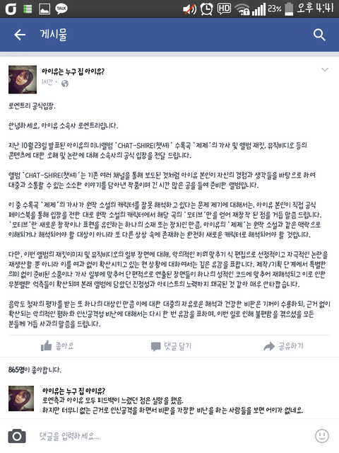 근데 오늘 무엇보다도 아이유와 로엔에 실망했던 점은 이런 사건에 대한 대응방식입니다.