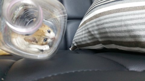 페트병에 가둔것 아닙니다. 페트병 밑둥을 잘라 장난감을 만들어 주었습니다. 위에서 보니 마치 가둔 것 같아 보이지만.. 정말 아녜요.. ㅎㄷㄷ