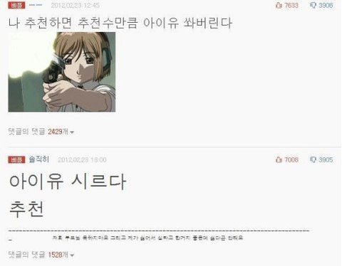 아이유 싫어하던 사람들이 워낙 많았으니 그 증거로