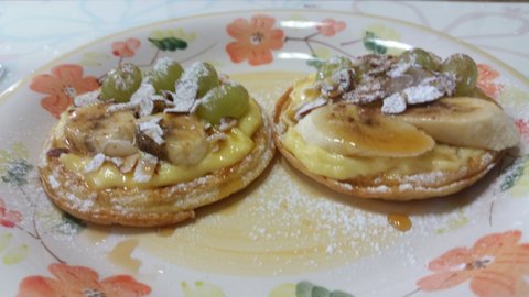 마트에서 구입한 와플위에 직접만든 커스터드크림을 바르고