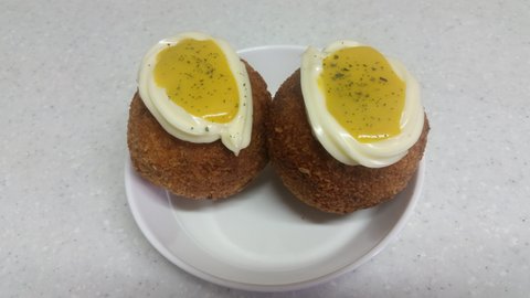 이탈리아의 주먹밥 아란치니를 만들었습니다 어설픈 플레이팅 한다고 머스타드와 마요네즈로 모양을 냈습니다 ^^