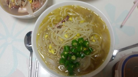 육수를 만든 시원하고매콤한 완자국수 입니다