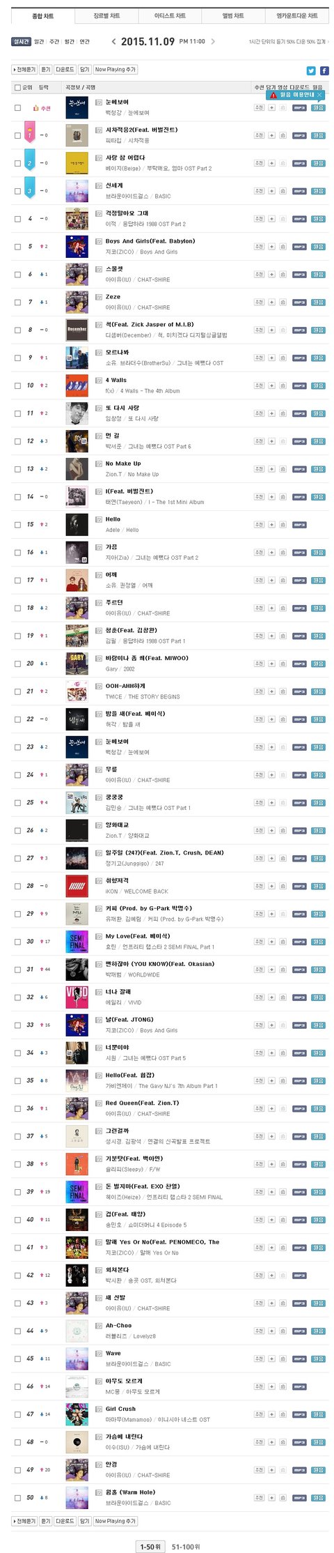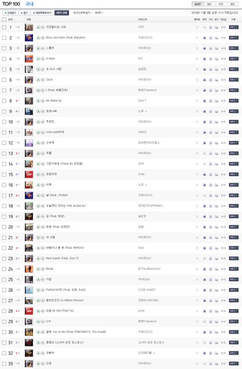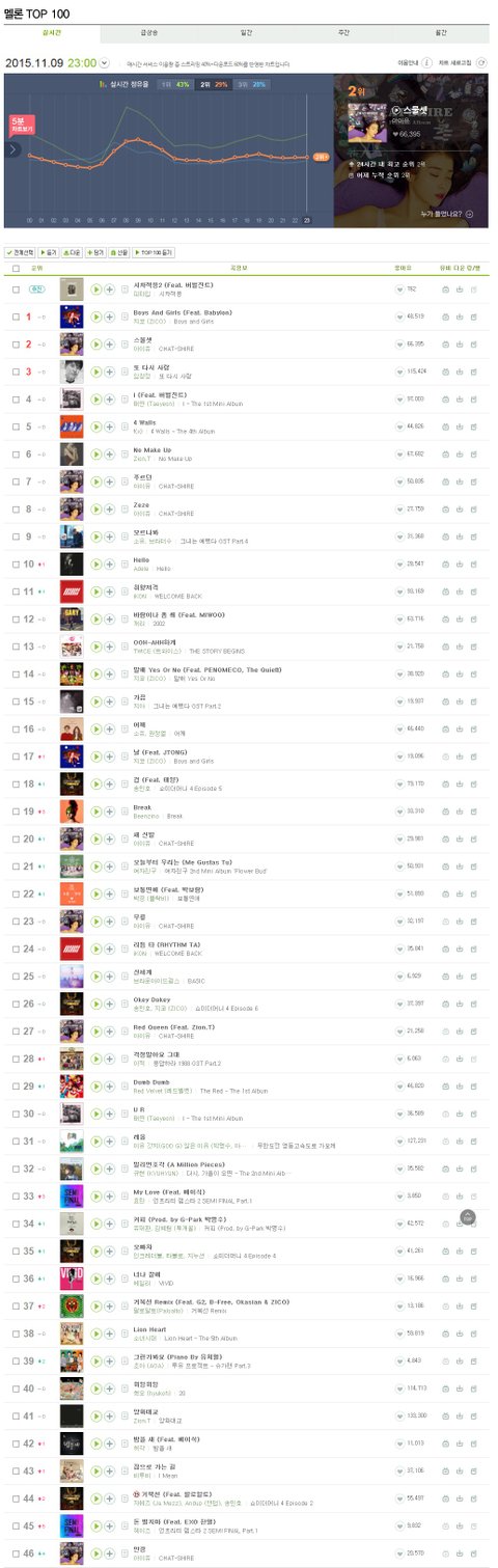 멜론 차트 뿐 만 아니라 네이버 뮤직, 올레 뮤직, 엠넷 차트임