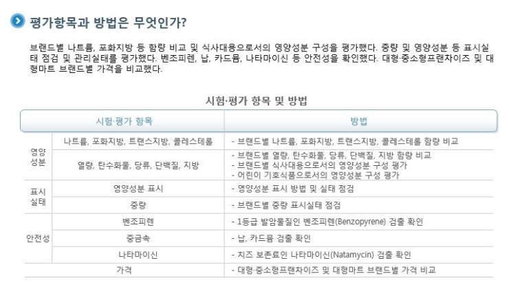 전 브랜드에서 벤조피렌, 납, 나타마이신이 불검출되었고, 카드뮴은 미량 검출되어 안전한 것으로 나타났다.