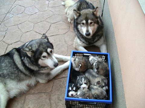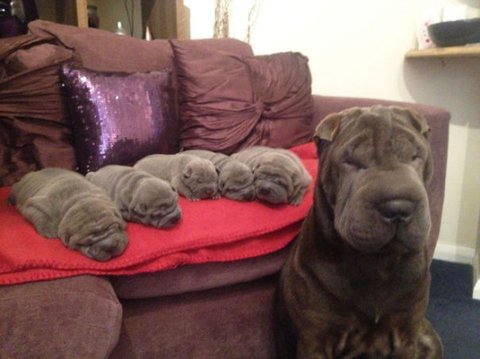 귀여운 아기 자랑하는 엄빠견들