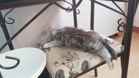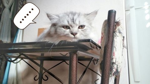사료그릇을 닦는사이 식탁에 들어가서 뒹굴뒹굴..