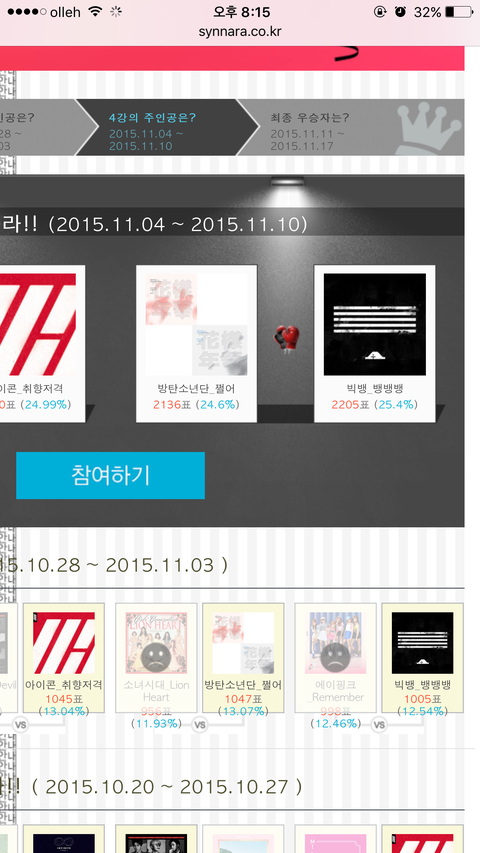 오늘까지 4강투푠데 얼마차이안나 아미들 아미들의힘을보여줘!!!!!!!!! 4시간남았어 우리애들 결승보내주자 파이팅!!!!!!!!!