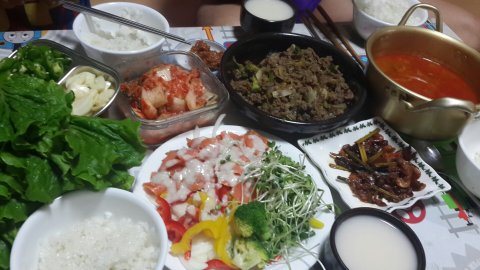 남들처럼 예쁘게 차려놓지는 못하지만 다같이 모여앉아 맛있게 먹으니 기분이 좋네요. 평소에 친구들과 단톡방에서 서로 먹는 음식사진들 자주 올리는데 그중에 몇장 올려볼것임ㅋㅋ