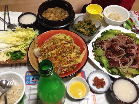 5년을 주말부부로 살다가 이제 모여살아서 저녁밥을 다같이 먹게되었어요. 부부가 둘다 술을 좋아해서 알콜이 빠지지않는 저녁밥상입니당.