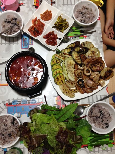 우리식구 잘먹는다고 친구들은 얘기하던데 그런건가 싶고해서 글올려봤어요. 밥상보면 주변사람들은 알아보지싶은데...부끄럽기도하고..^^