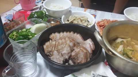 마지막은 그냥 젤 자주해먹는 돼지고기수육이랑 된장찌개로.... 돼지고기는 그냥 습관적으로 만만히 먹어요.