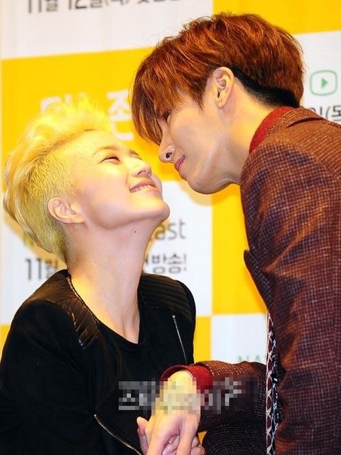 기자들이 스킨십포즈 요구했나봄
