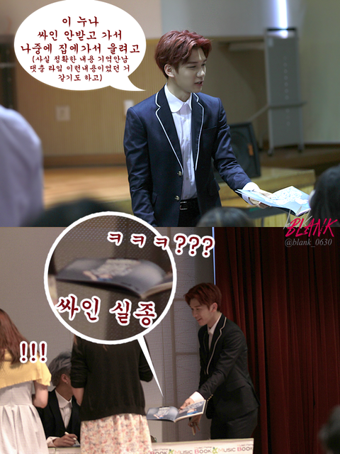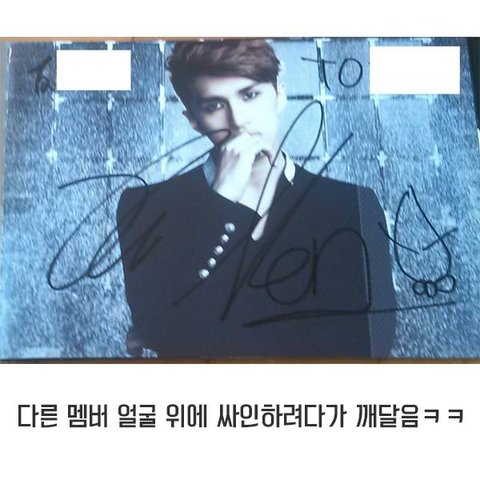 +) 혹시 오해하실까봐 ㅋㅋㅋ 회사한테 연락해서 싸인해달라고 하면 해주고 보내줬을텐데 ㅋㅋㅋ 팬분들이 귀엽다고 그냥 갖고 계심ㅋㅋㅋㅋㅋ 팬도 가수도 싸인에 신경 안쓰고 서로 얘기나 하곸ㅋㅋ 싸인회에서 대화를 더 중요시하는 너란 남자... 다정한 남자 ... (심쿵)