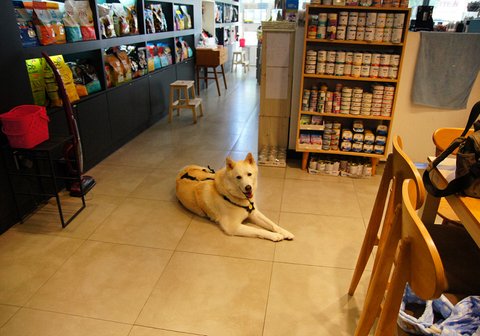 산책의 마무리를 동물병원에서 물도 마시고 앉아서 쉬면서 하고 있어요.