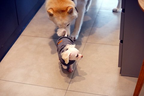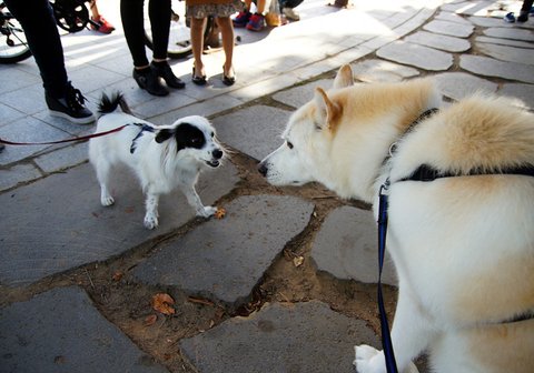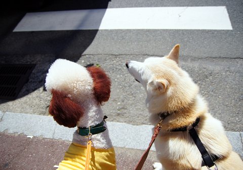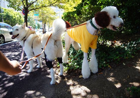 뽀삐도 같이 산책하고 싶은가 봐요.