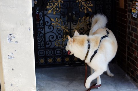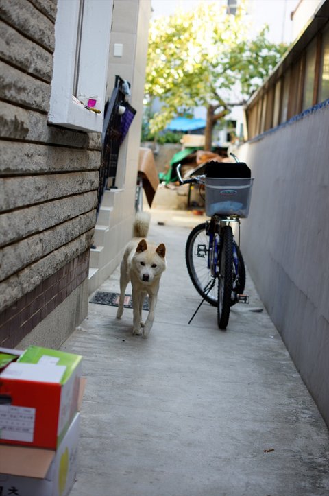 동네 산책하다가 동네 진돗개 친구 뽀삐를 불러낸 심바에요.