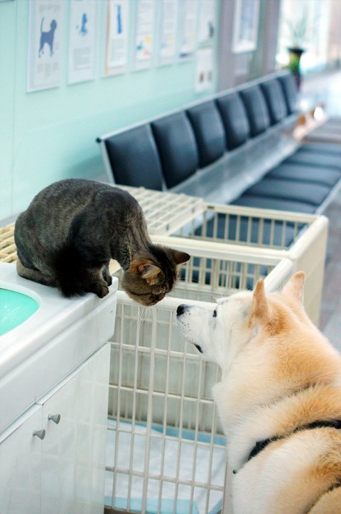 동네 한바퀴 돌고 동물병원 놀러왔어요.. 마이랑 인사하고 있는 심바