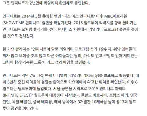 응 ㅋ 니가 그래봤자 예능 프로그램 섭외 1순위는 인피니트임 ㅂㅁㄱ