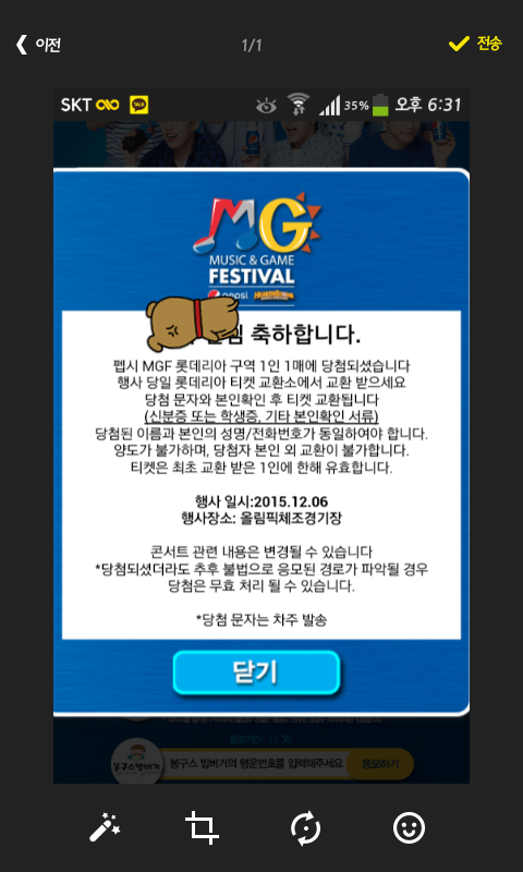뮤직팩 펩콘 당첨되써ㅠㅠㅠㅠ